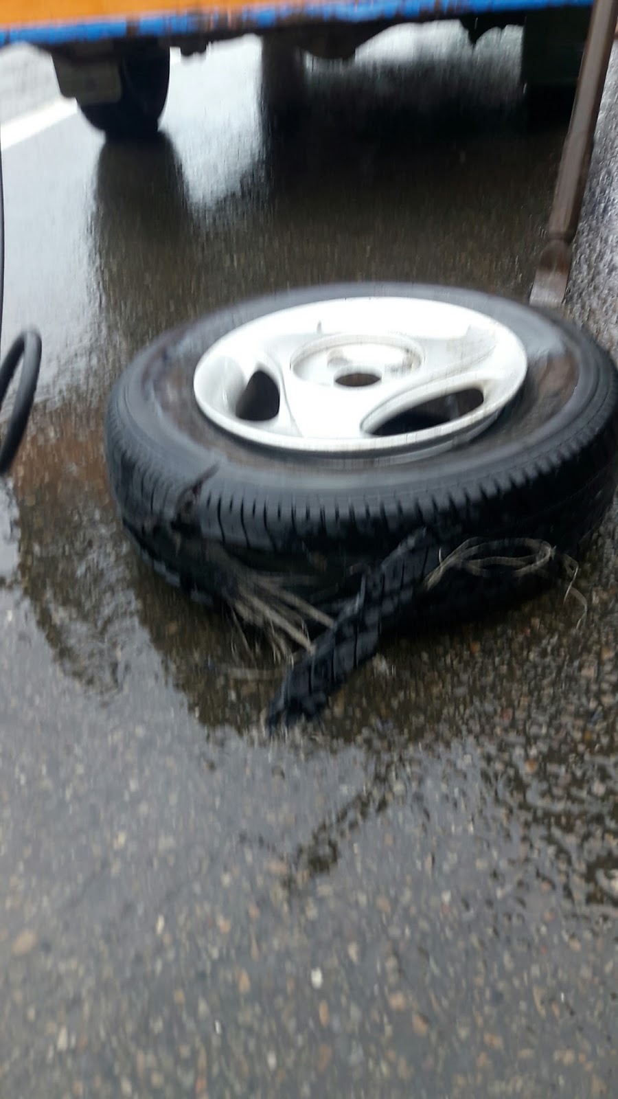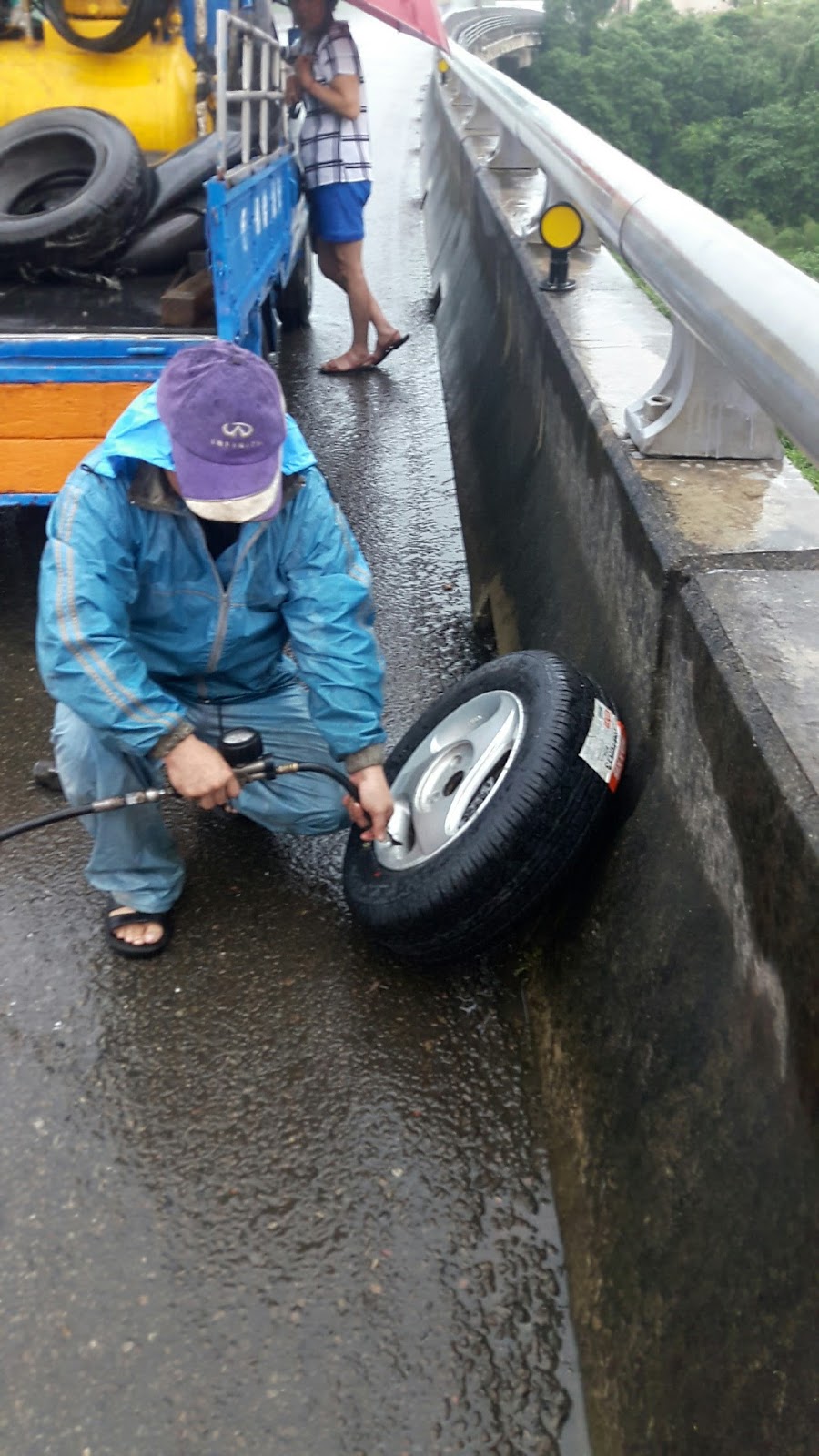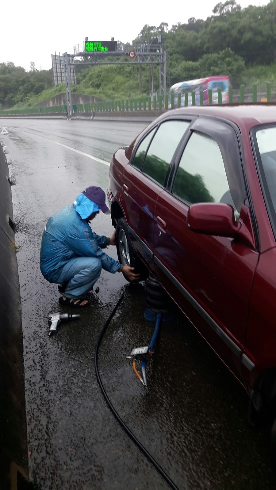 人生第一次遇見汽車在高速下行使加上大雨的情形下爆胎,
